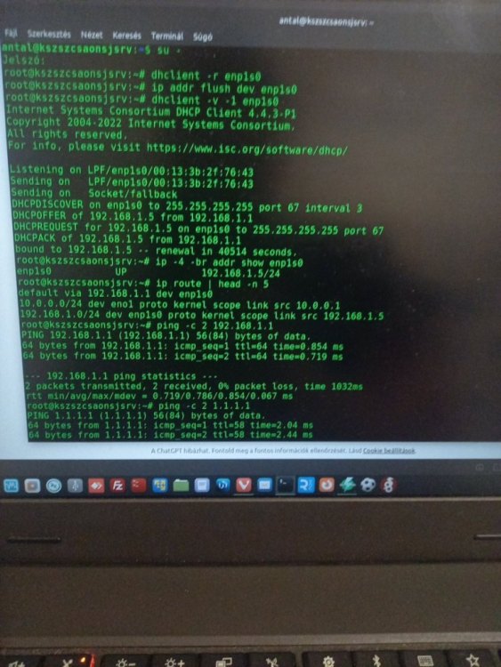 18. Sziasztok, Telekom GPON optikai hálózaton futó *** előfizetéssel kapcsolatban kérnék szakmai segítséget.Szolgáltató: ***, Telekom optikai infrastruktúrán ONT: KAON PG2141N (IPTV a LAN1 porton) Helyi háló: Debian 12 kétlábas gateway (WAN: DHCP, LAN: 10.0.0.0/24), NAT, tűzfal, IP-kamerák, NVR, IP-telefonok, nyomtató, PC-k. Ugyanez a gateway másik (régi) vonalon évek óta stabil. Jelenség: Debian WAN (enp1s0) közvetlenül a KAON egyik LAN portjára kötve. DHCP-n IP-t kapunk: pl. 192.168.1.5/24, gw: 192.168.1.1, lease ~40 000 sec. ping 192.168.1.1, ping 1.1.1.1 működik, van internet. Kb. 20–30 mp után a WAN forgalom megszakad. Nem lease expiry, nem linkdown, route is rendben. A jelenség reprodukálható. Laptopot közvetlen a KAON-ra dugva (DHCP 192.168.1.x) stabilan működik az internet, tehát klasszikus „home” üzemmódban jónak tűnik. Erősen úgy néz ki, mintha router-behind-router detektálás, WAN session policing vagy OLT provisioning policy bontaná a kapcsolatot, ha intézményi gateway kerül az ONT mögé. Kérdés: Telekom GPON + KAON PG2141N esetén ismert-e ilyen jelenség, ha Debian / router kerül mögé? Van-e valamilyen router-behind-router / NAT-behind-NAT védelem, ami WAN resetet okoz? Van-e tapasztalat arról, hogy Huawei OptiXstar (pl. HG8147X6-10) stabilabban működik-e ilyen topológiában? IPTV (LAN1) + internet esetén kérhető-e olyan beállítás, hogy egy másik LAN port stabil internetet adjon egy gateway felé (akár NAT-tal, nem feltétlen bridge)? Köszönöm előre is minden műszaki tapasztalatot és tippet. Üdv:Antal